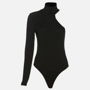 Detalhes: Body de gola alta e nula manga com um corte lateral que revela parte do ombro e do colo, possui textura canelada e que modela o corpo.