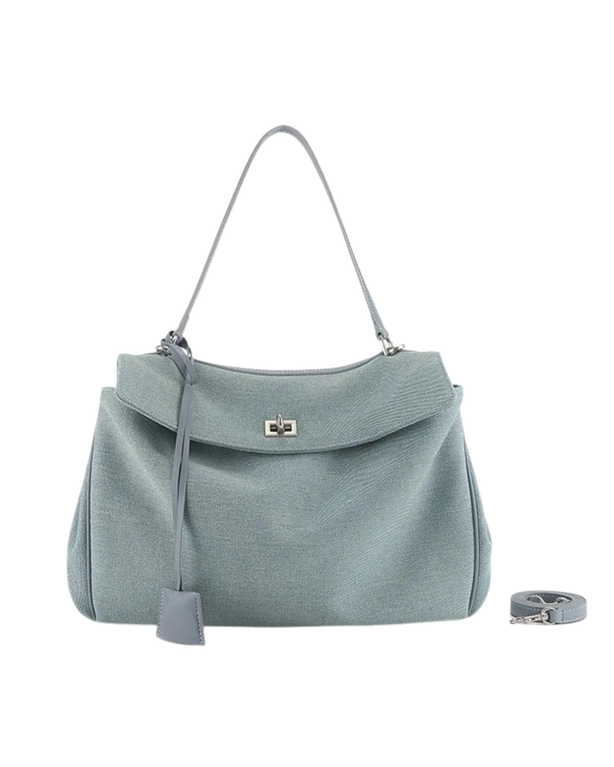 A Bolsa de Ombro Suede Taranto na cor azul acinzentado combina sofisticação e praticidade. Confeccionada em suede de alta qualidade, oferece textura macia e duradoura.