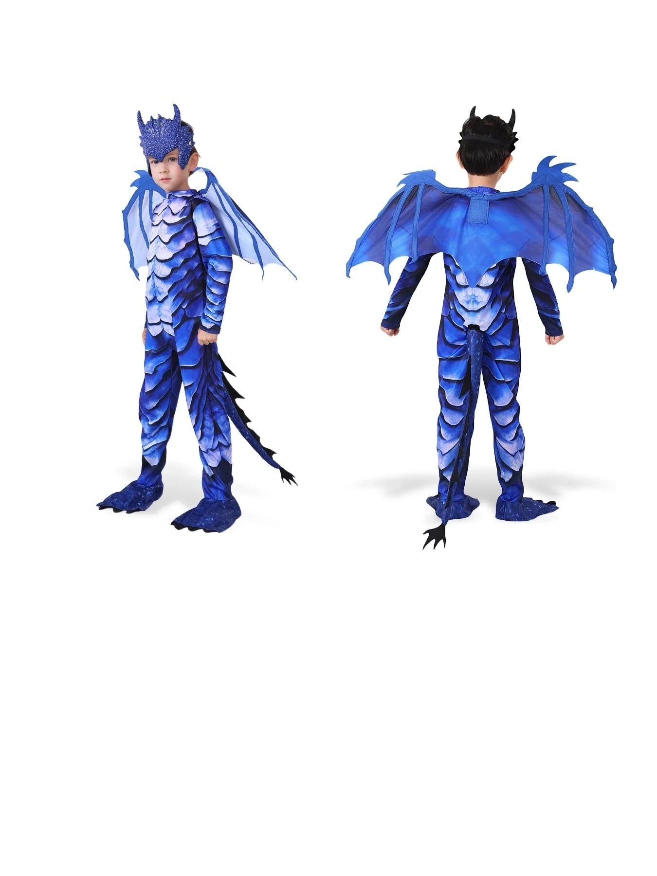 Informar quando este item estiver disponível Fantasia Infantil Cavaleiro Dragão Azul Gélido com Asas e Máscara