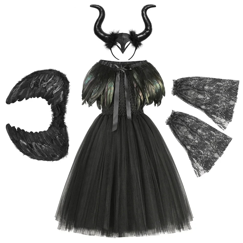 Incluso no pacote: 👗 Vestido com detalhes inspirados na personagem, combinando texturas e brilho. 🪽 Asas estruturadas para um visual imponente. 👑 Tiara com os icônicos chifres da Malévola.